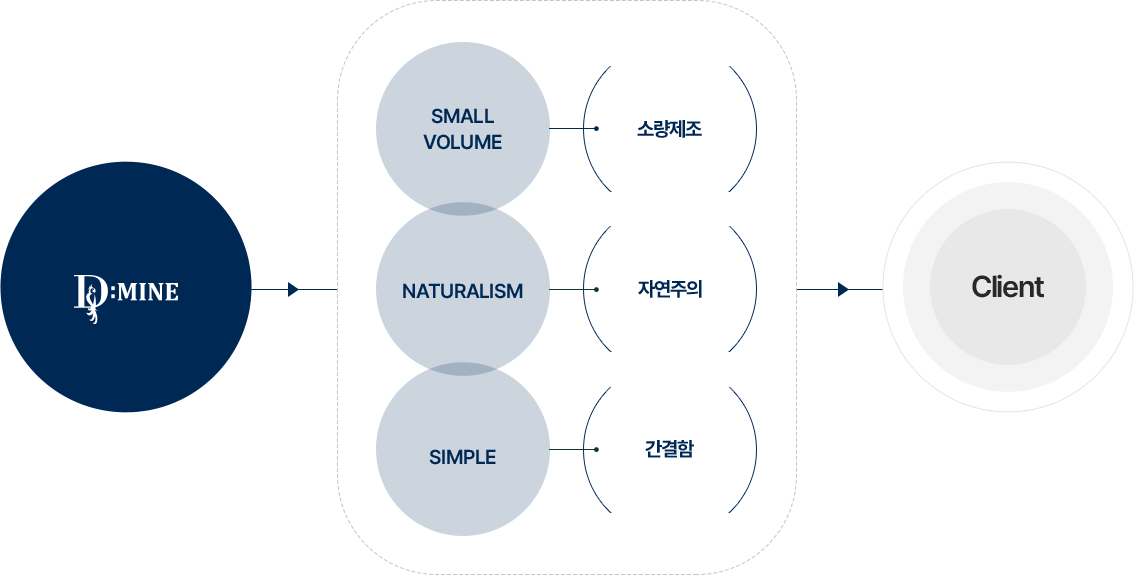 디마인은 제조자 관점이 아닌 소비자가 추구하는 트렌드에 맞추어 천연물과 유기농 원료의 사용을 지향하고 있습니다.